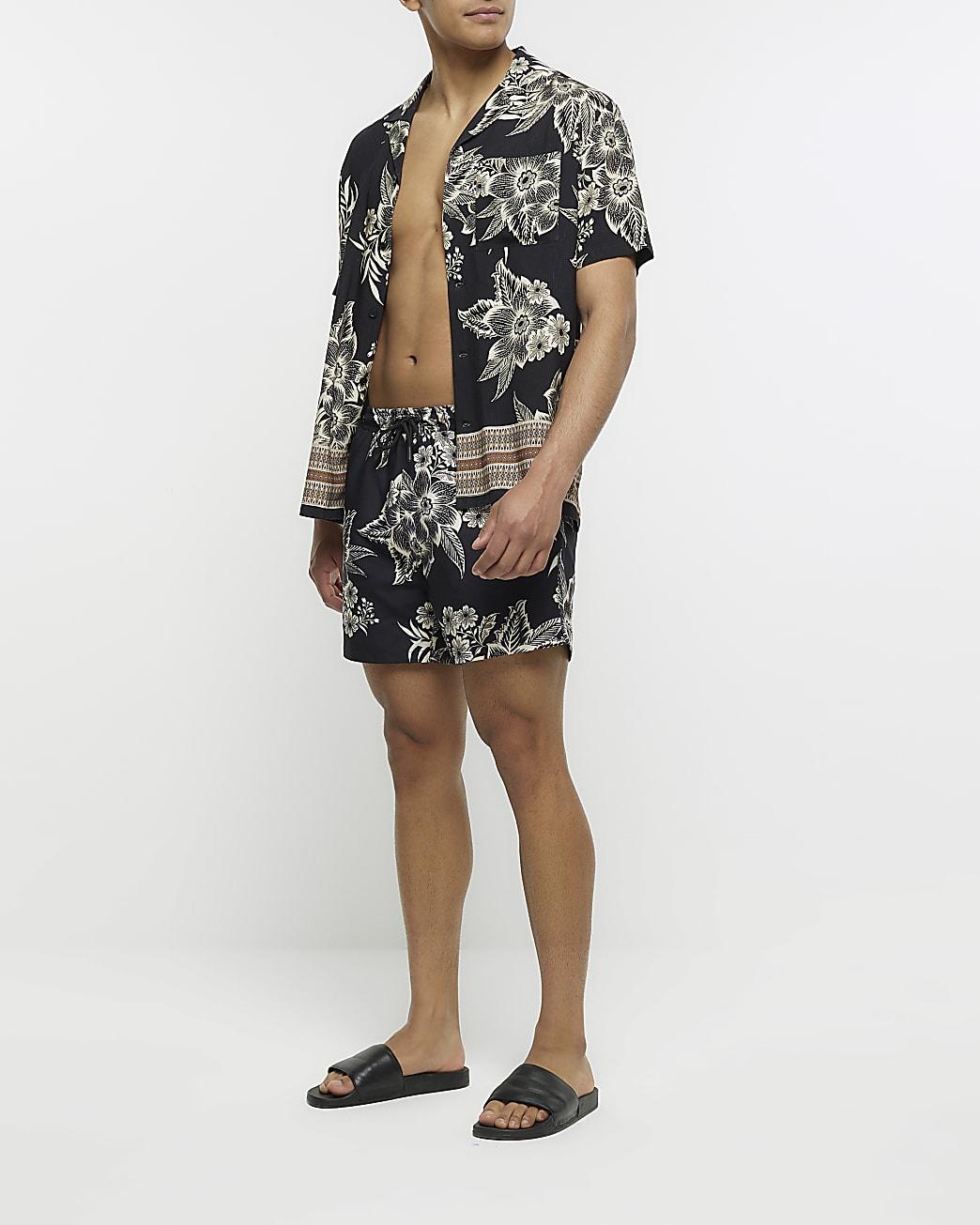 River Island Black Regular Fit Floral Swim Shorts For Men Lyst Uk